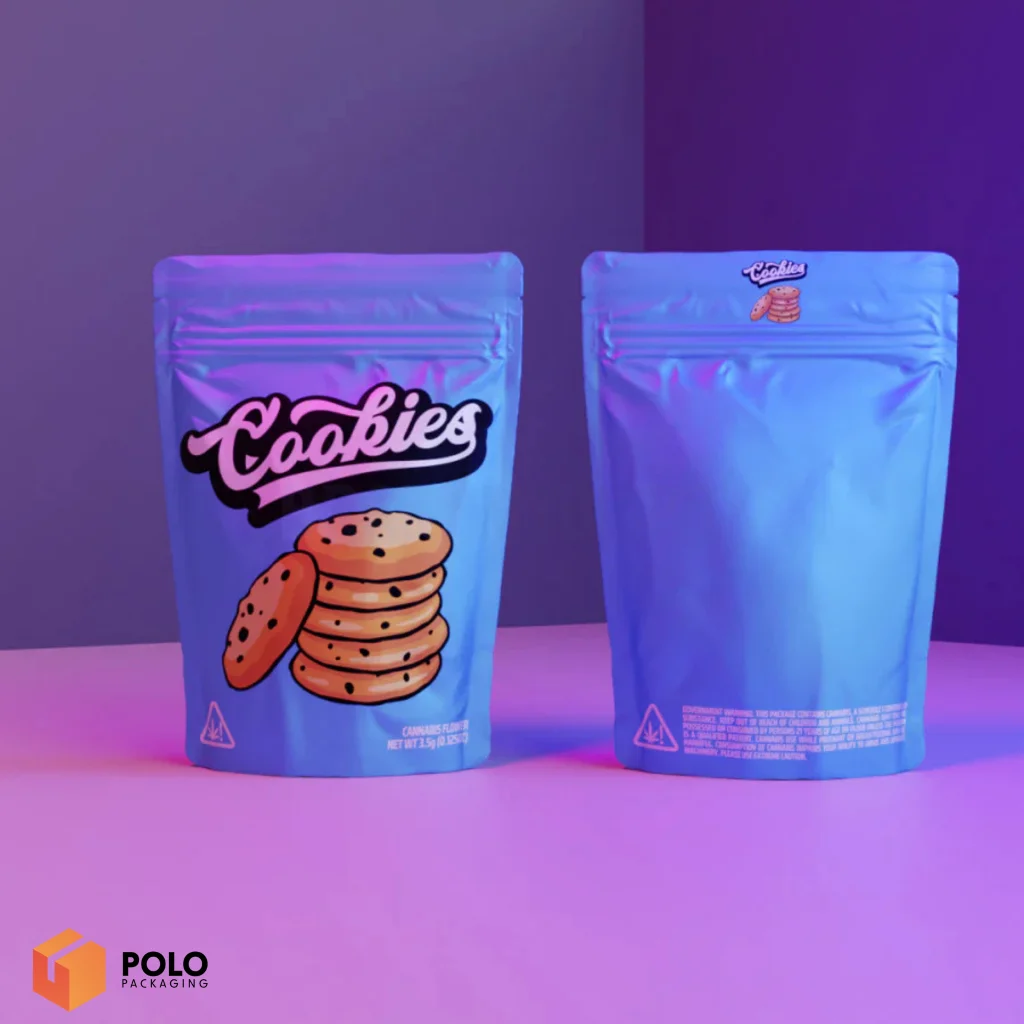 Polo Packaging offers high-quality cookies Mylar bags in sizes such as 3.5 ounces, which can be ordered with custom prints, logos, and labels. Our bags are designed to keep your cookies fresh with resealable and heat-seal features. Perfect for bulk packaging, wholesale orders, and personal branding, with fast shipping and great prices.
